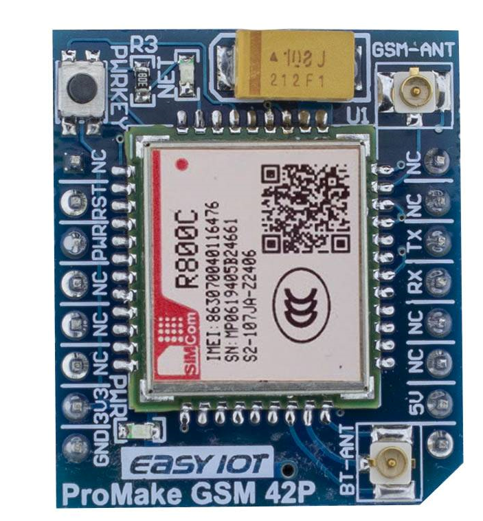 ماژول ProMake GSM R800C یک راه کار کامل ارتباط با شبکه تلفن همراه GSM است که از ماژول R800C قدرت گرفته است. این ماژول مجموعه کاملی از قابلیت های مورد نیاز برای ارتباط با شبکه‌های سلولی را در اندازه ای کوچک ارائه می نماید و به جز آپشن بلوتوث،ساير ويژگيهای ماژول SIM800C را شامل می شود :